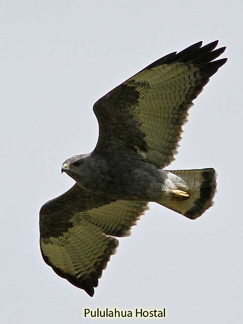 I originally thougt its was the majestic Black-and-chestnut Eagle, but Derek Kverno corrected me and appears to be a dark-morph Variable Hawk (Buteo polyosoma). The dark underside and the tail band look very similar to the eagle.